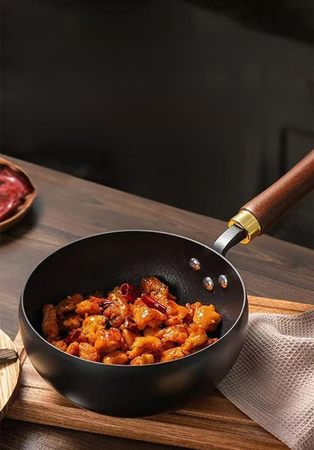 Cacerola de hierro fundido con textura martillada